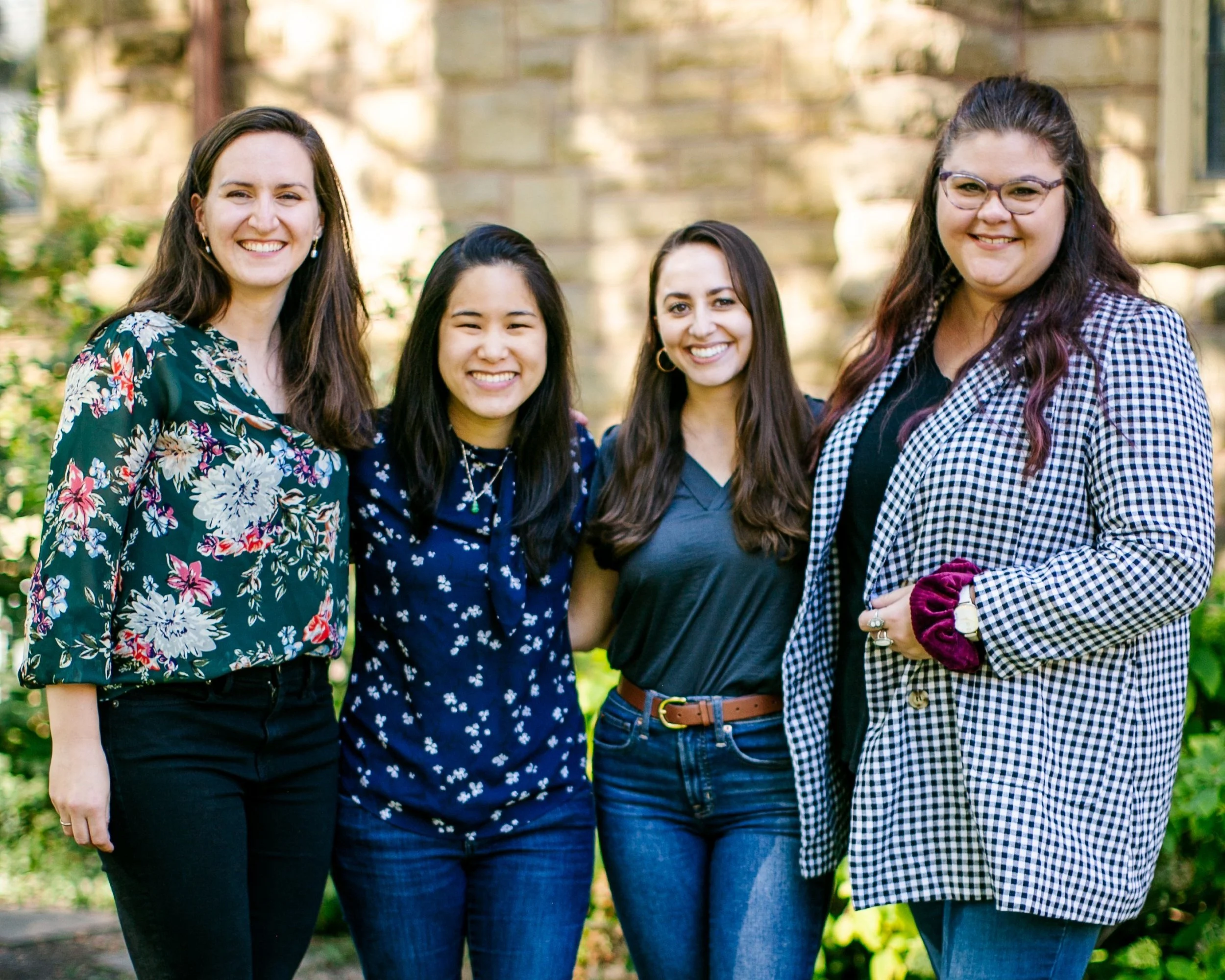 LYNX staff look forward to welcoming you to Guild Row! From left: Caitleen Kahn, Florence Mak, Michelle Ravitsky, Quinn Middleman.